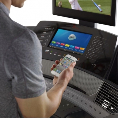 The Free Motion 890 treadmill allows you to watch your favorite shows and workout anywhere in the world for the ultimate workout motivation. iFit technology lets you create a route anywhere in the world with Google Maps and the 890 treadmill automatically adjusts the incline and decline to match the terrain. The 10" touch screen with built in lets you swipe through workout stats with your finger or view your iFit workout in Google Street View. The built-in 15" HDTV provides a wide viewing angle and beautiful picture for your favorite shows and movies.